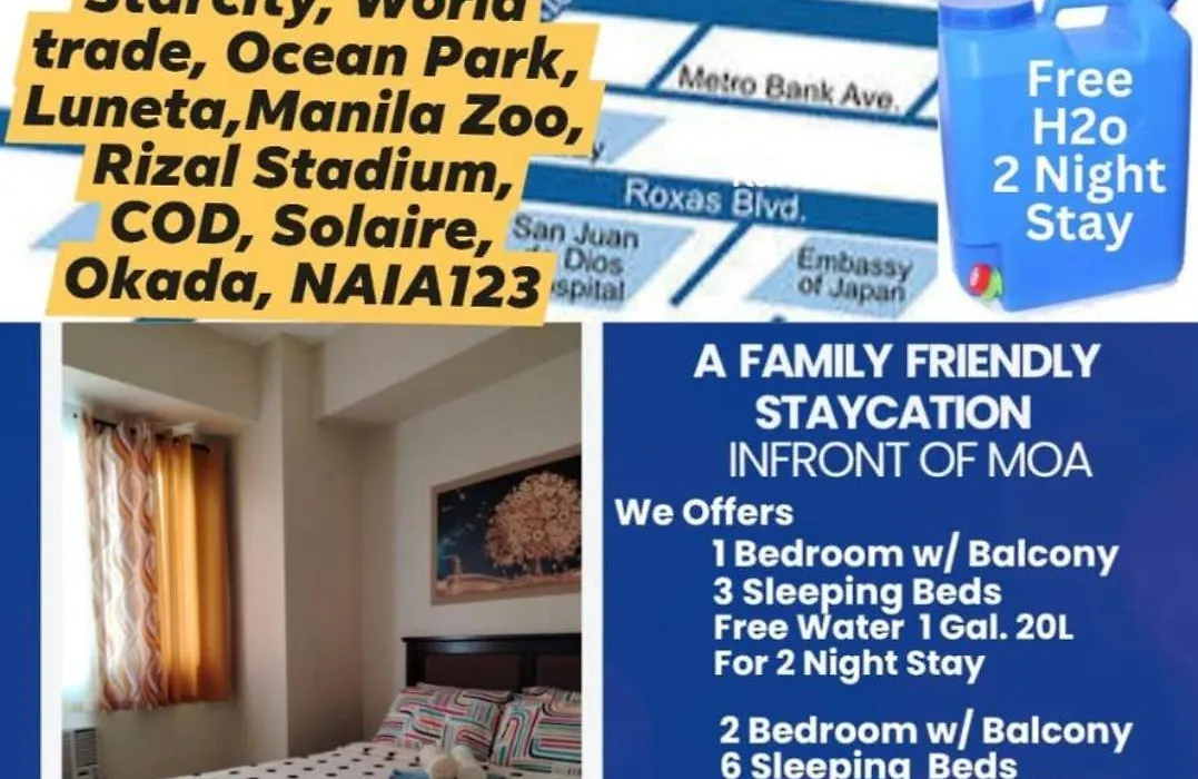 ex. Family Or Group 2 Bedroom Staycation Infront Of Moa, Arena , Smx, Arena, Near Picc, Dfa Macapagal, World Trade, Star City, Ayala Mall, & Naia Sea Residences Tower A